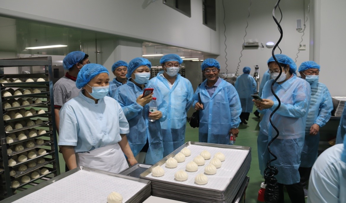 座談會(huì)召開(kāi)之前,王浩濤書(shū)記等領(lǐng)導(dǎo)帶領(lǐng)老黨員代表現(xiàn)場(chǎng)參觀了長(zhǎng)清食品產(chǎn)業(yè)園。在園區(qū)內(nèi)各生產(chǎn)車間現(xiàn)場(chǎng),寬敞明亮的車間環(huán)境、一排排整齊劃一的流水線設(shè)備,統(tǒng)一著裝精神抖擻的員工們,讓老黨員代表眼前一亮,心潮澎湃,感慨萬(wàn)千,大家感慨:金德利快餐終于從手工作坊跨越到現(xiàn)代化工廠生產(chǎn),這樣的改變是原來(lái)不敢想像的,大家對(duì)未來(lái)發(fā)展前景充滿信心和期待。