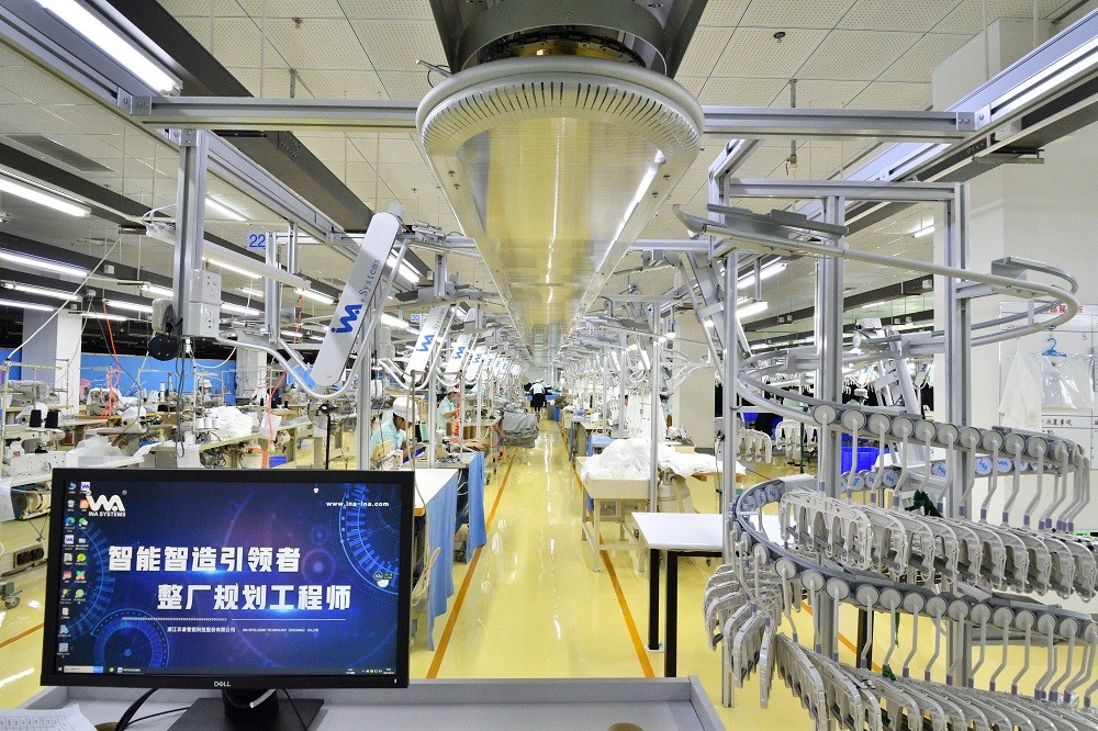 除了面料染色的智能化改造,圍繞服裝的設(shè)計、研發(fā)、生產(chǎn),元首集團也正在加快變革,通過探索和引進自動化縫制單元、智能吊掛系統(tǒng)、柔性整燙系統(tǒng)、自動立體倉儲和物流配送系統(tǒng),建立生產(chǎn)流程的MES系統(tǒng)管理,提高生產(chǎn)效率。