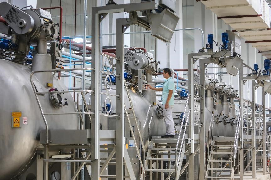 在元首集團針織服裝產(chǎn)業(yè)園,引人注目的不僅是產(chǎn)業(yè)變革和調(diào)整,更有智能化升級后的質(zhì)量提升。其中,面料印染作為服裝生產(chǎn)研發(fā)的關(guān)鍵環(huán)節(jié),更能體現(xiàn)出企業(yè)科技創(chuàng)新實力和綠色發(fā)展水平,也是激活新舊動能轉(zhuǎn)換的“主引擎”。