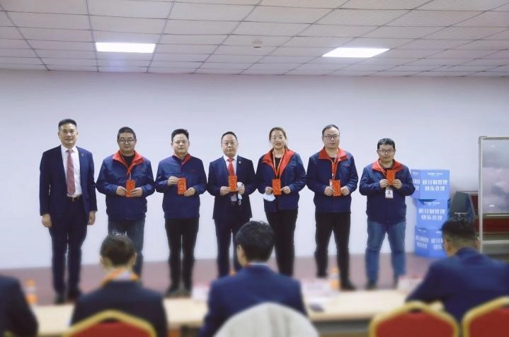 公司創(chuàng)始人兼總裁顧永德(左1)為2022年度專利獎(jiǎng)獲得代表頒發(fā)榮譽(yù)獎(jiǎng)金及合影